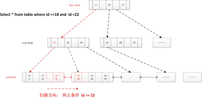 , 顺序扫描所有结果, 直到终止条件满足id >=22 (select * from user_info where id >= 18 and id < 22)