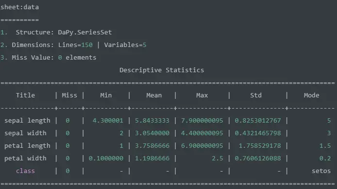 >>> from DaPy.datasets import iris