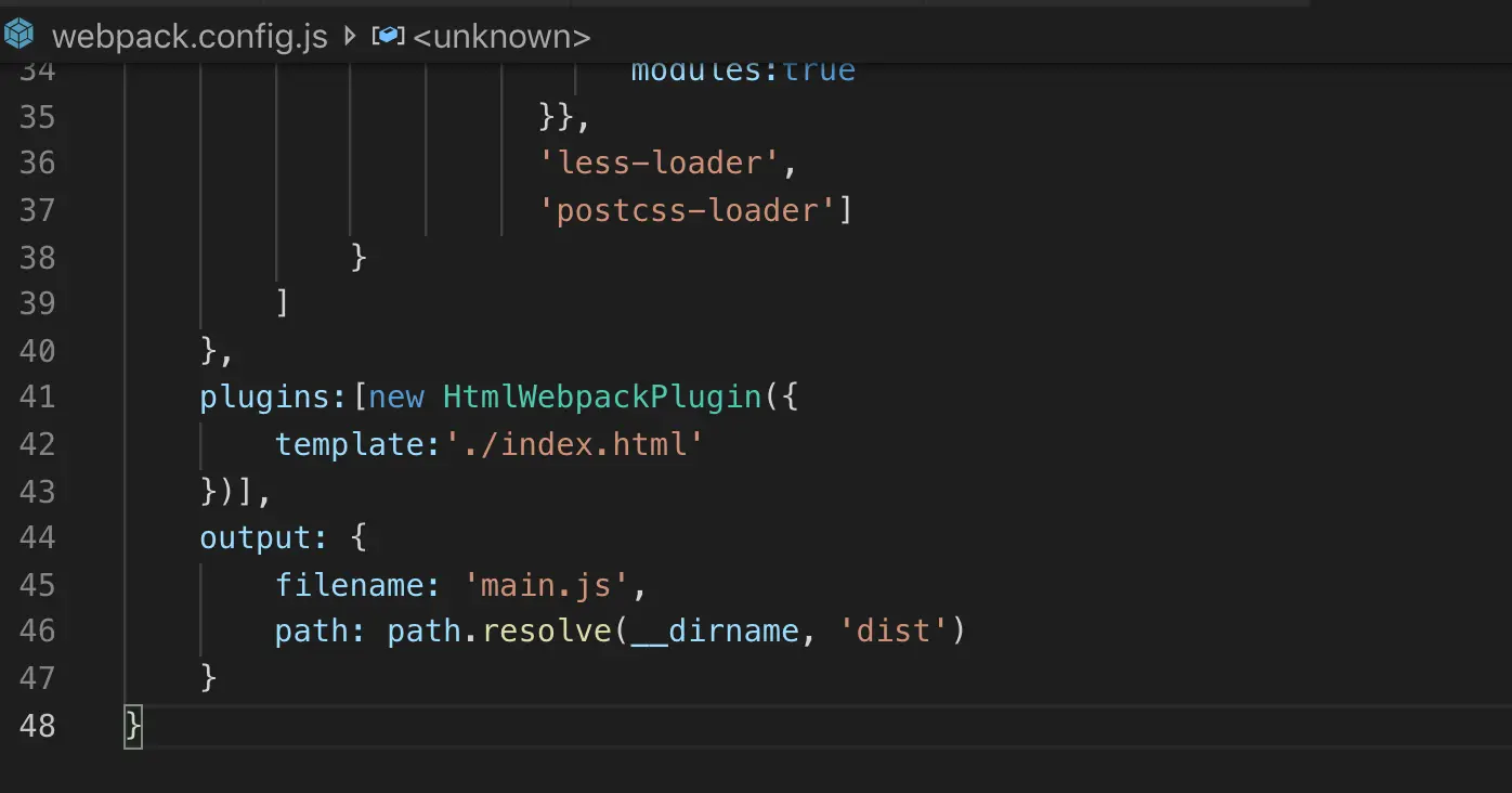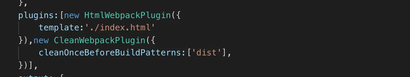 通过解构的方式引入,在plugins中new 实例化,默认不写入小括号内容,是可以直接dist目录的,而 cleanOnceBeforeBuildPatterns 配置项中 默认为 ['**/*'] ,在数组中可配置不删除的文件,而weboack打包我们都希望直接清空dist目录,所以配置了 ‘dist’ 。⚠️