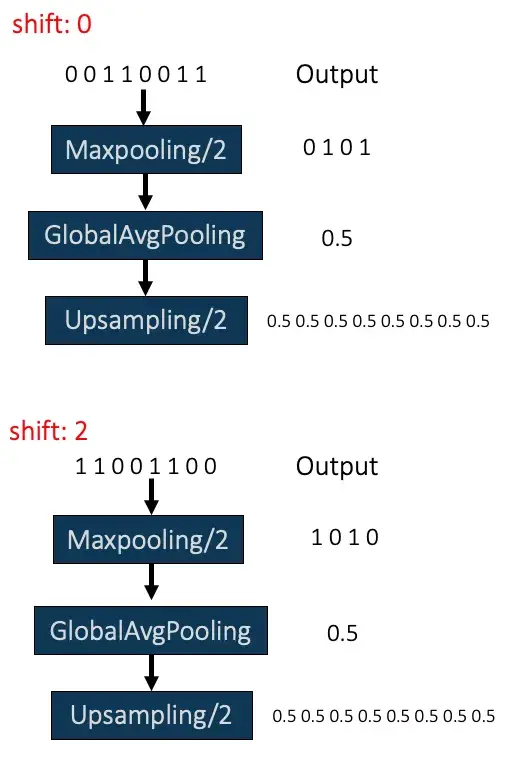 根本原因就在于下采样,无论是Max Pooling,Average Pooling,还是Strided-Convolution,只要是步长大于1的下采样,均会导致平移不变性的丢失。