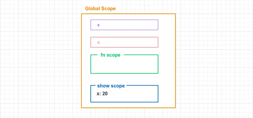 - show函数作用域:x、可访问所在作用域中的所有变量:x和fn