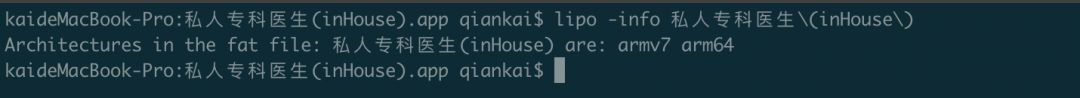 我们可以用 lipo 命令来查看可执行文件支持的指令集: