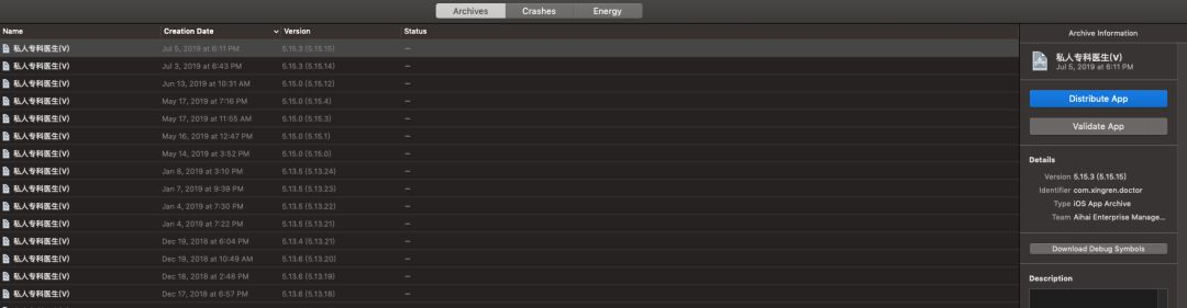 当我们在 Xcode 菜单中选择 Product -> Archive 后,编译系统就会对当前的 Xcode 工程进行分析、编译和打包,最终生成目标 Target 的一个 Archive(归档),我们可以在 Window -> Organizer -> Archives 页面查看到所有缓存的历史归档信息: