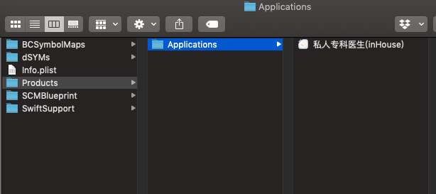 这个 .xcarchive 文件包含了我们的应用和它的符号表信息(symbol information)以其它的相关的资源,右键选择 显示包内容,我们可以查看一个 Archive 归档中具体的文件结构: