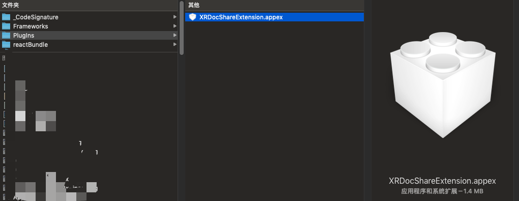 如果你的 App 实现了应用扩展(App Extension),扩展的包会以 .appex 的后缀存储在 PlugIns 文件夹中: