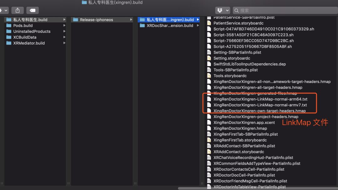 要找到对应的 LinkMap,首先在 Xcode Target -> Build Settings -> Write Link Map File 设置为 YES,然后在 Target -> Build Settings -> Path to Link Map File 选项中设置好 LinkMap 的生成地址(一般用 build 文件夹中的默认地址就好了),archive