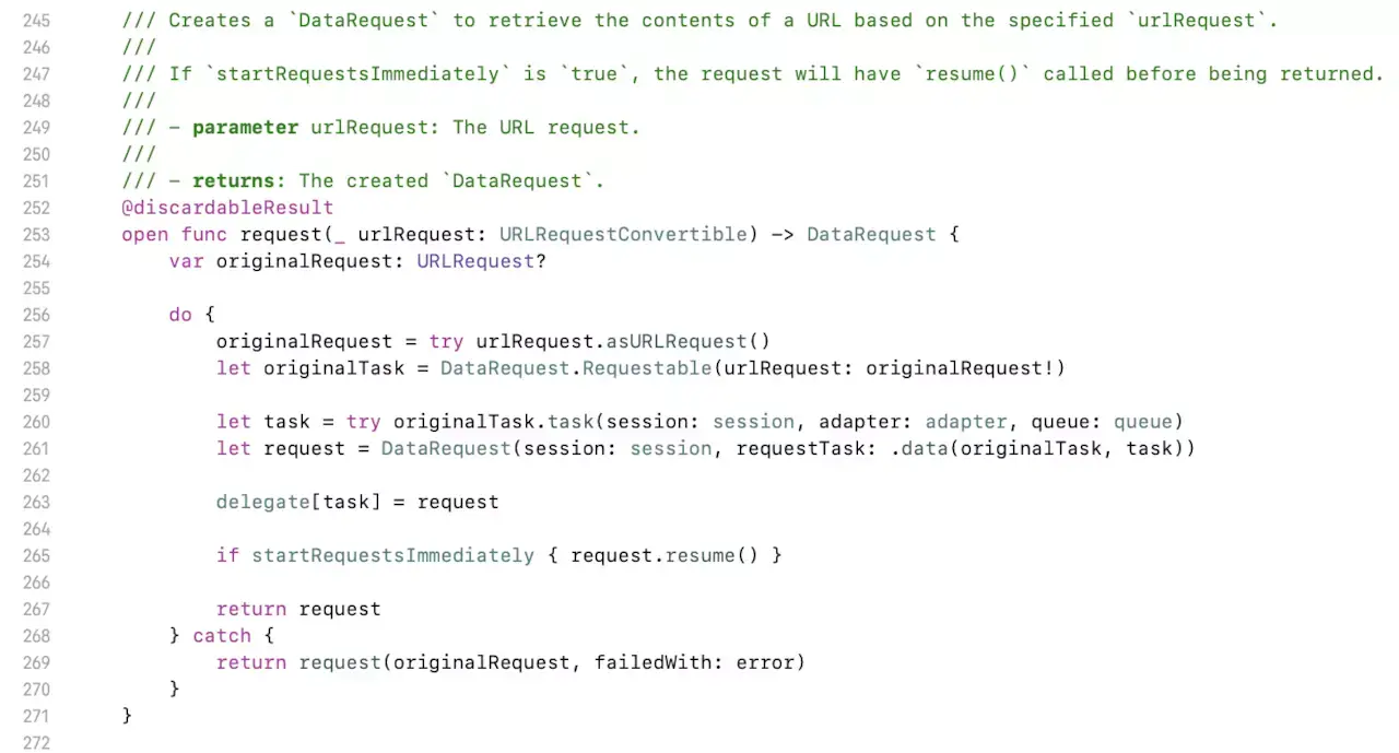 让我们把视线再拉回到上一篇中的SessionManager.swift的request方法: