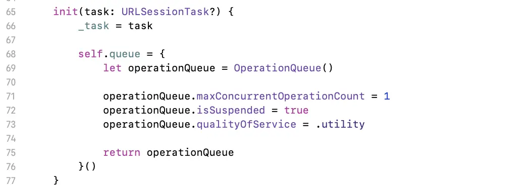 有源码可知当前这个delegate是TaskDelegate,进入到TaskDelegate.swift源码可以发现queue是OperationQueue,并且在TaskDelegate的init方法中实现了初始化。