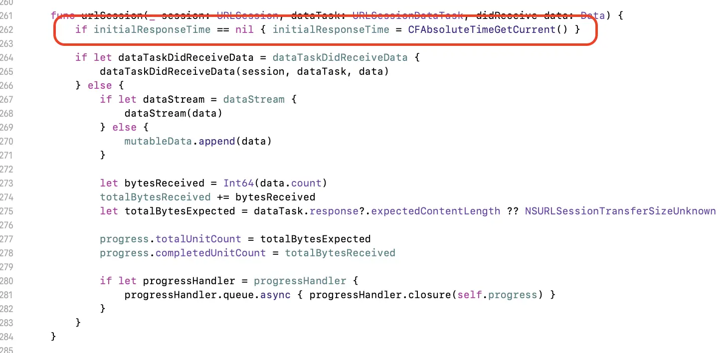 DataRequest的init方法中,会向 queue 队列中添加一个任务,获取当前的时间戳赋值给 endTime,这就是网络请求结束时间。