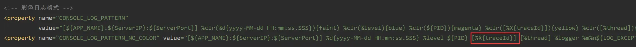logback配置文件模板格式添加标识%X{traceId}