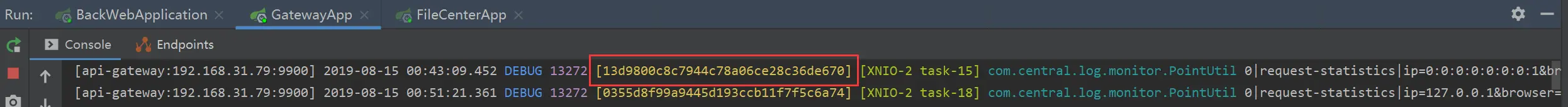 网关生成traceId值为13d9800c8c7944c78a06ce28c36de670