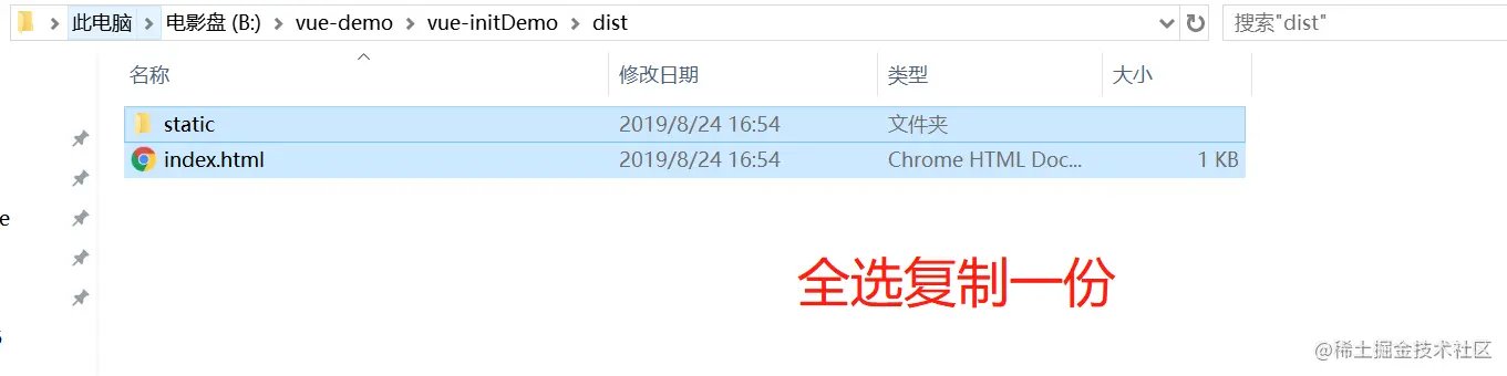 - 将打包后的dist文件里面的内容复制一份到nginx文件中的html文件中