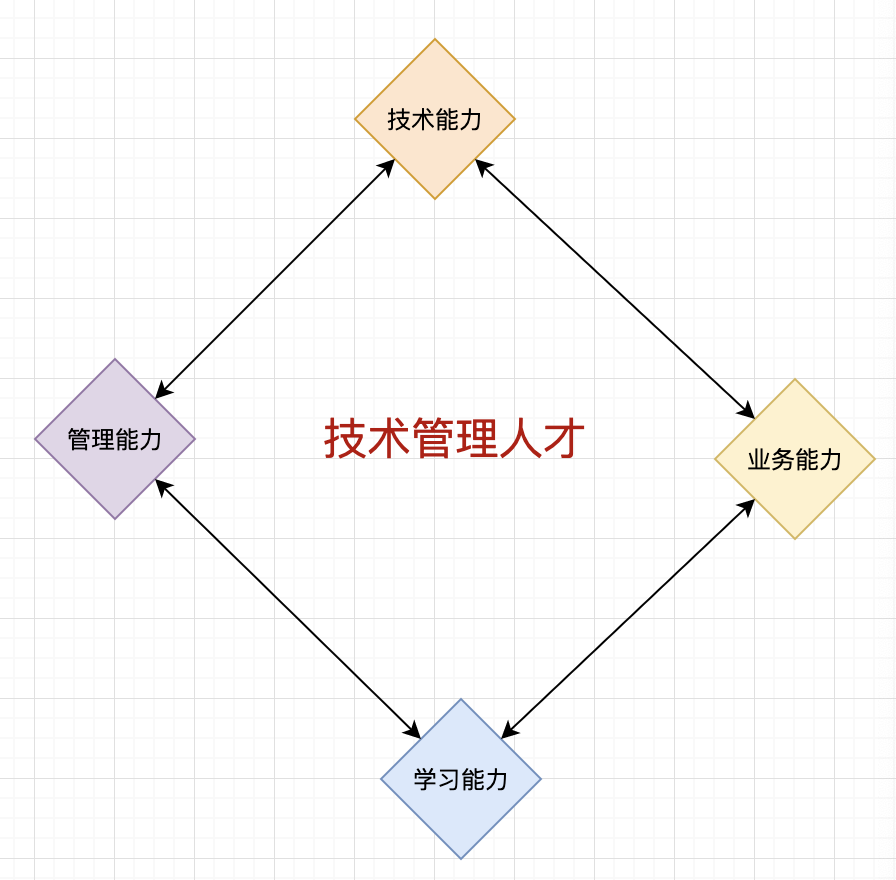 高素质技术人才需要有四方面的综合能力,技术能力、管理能力、业务能力、学习能力