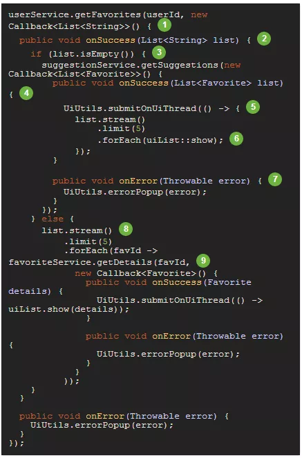 任务编排的能力和代码的可读性和可维护性紧密地耦合在一起。随着异步处理在数量和复杂度上的增加,组合和阅读代码变得更加困难。