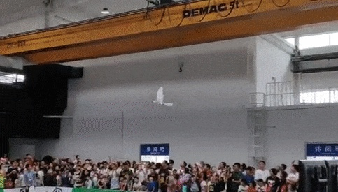 比如有机器鸟,或者叫扑翼机,现场工作人员说,它可以用在影视表演、航拍等方向。