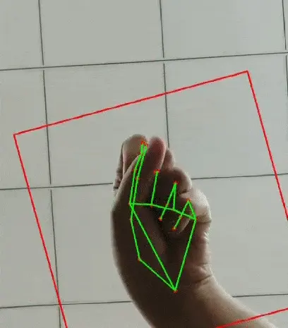 悄咪咪的,就把识别出的手势框图从一只手转移到了另一只手上。
