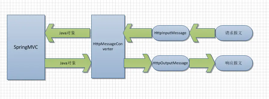 处理请求时,由合适的消息转换器将请求报文绑定为方法中的形参对象,在这里,同一个对象就有可能出现多种不同的消息形式,比如json和xml。同样,当响应请求时,方法的返回值也同样可能被返回为不同的消息形式,比如json和xml。