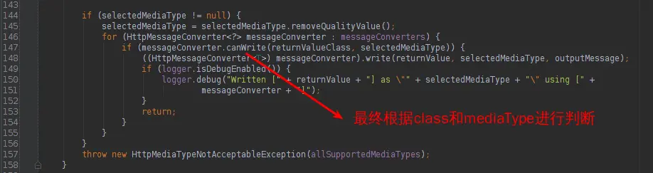之前分析过,消息转换器是根据class和mediaType决定的。