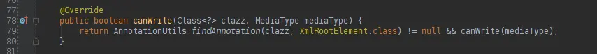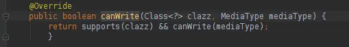 很明显,我们看到了2个xml和1个json转换器。 要看能不能转换,得看HttpMessageConverter接口的public boolean canWrite(Class clazz, MediaType mediaType)方法是否返回true来决定的。