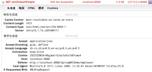 我们再来验证,同一地址,HTTP头部不同Accept。看是否正确。