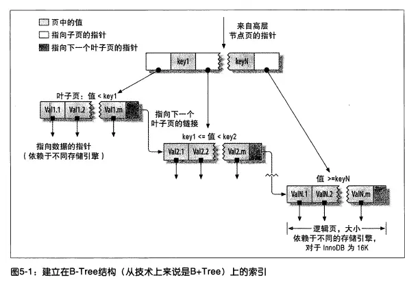B-tree索引b-tree意味着所有值都是按照顺序存储的,并且每一个叶子页到根的距离相同。 这种索引之所以能够加快访问数据的速度,因为存储引擎不再需要进行全表扫描获取需要的数据,却而代之的是从索引的根节点开始进行搜索。根节点的数据结构中存放了指向子节点的指针 如文中所示数据结构