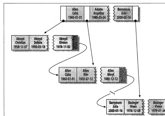 对于表中每一行的数据。索引中包含了last_name,first_name,dob列的值
