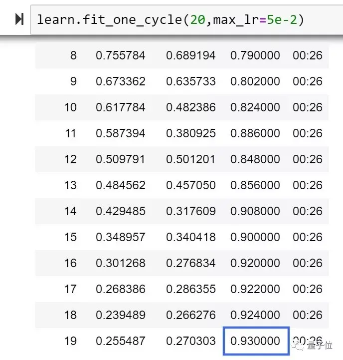他在ImageNette上进行了测试,在128px,20epoch的测试中,Ranger的训练精度达到了93%,比目前FastAI排行榜榜首提高了1%。
