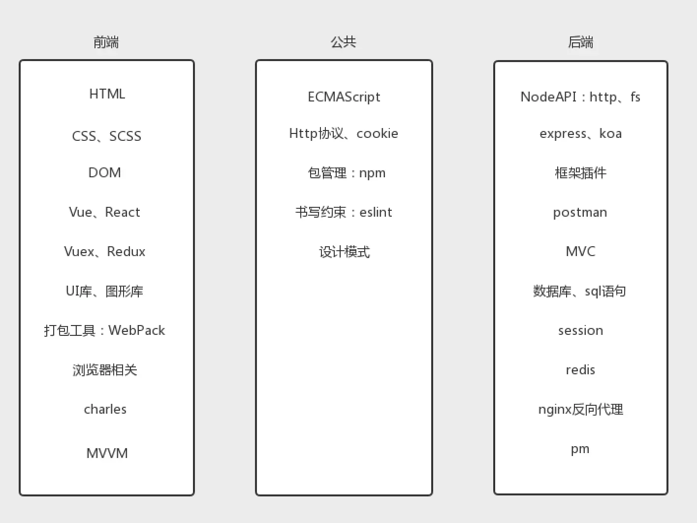 后端有些技术,是前端用不到的,比如数据库sql。也有些技术,是前后端公共的,比如cookie这种,后端还会注意set-cookie、和session相关的知识点。