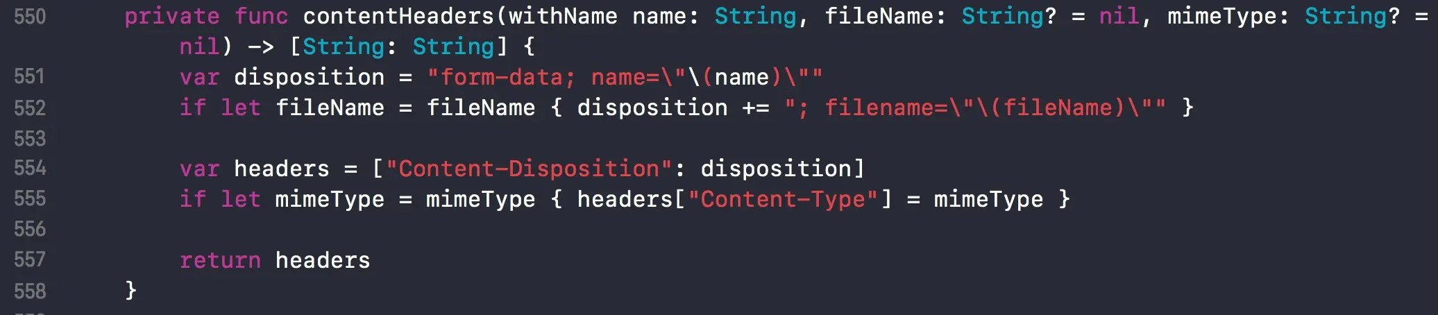 所以,最后生成的边界格式会有所不同。如: 首元素:--alamofire.boundary.xxx 中间元素:--alamofire.boundary.xxx 尾元素:--alamofire.boundary.xxx--