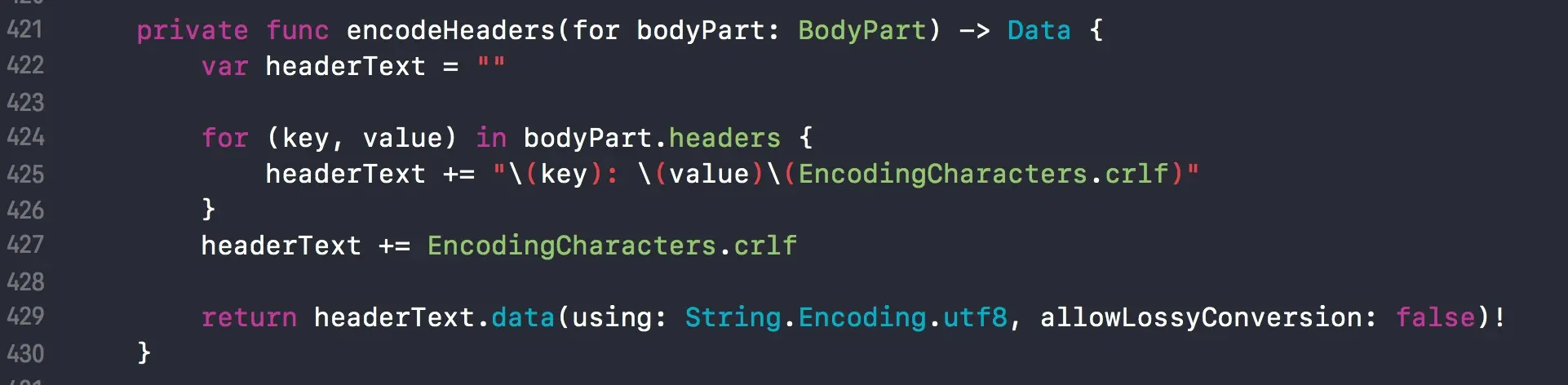 formData.append("BO".data(using: .utf8)!, withName: "name")