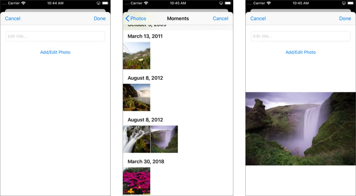 PhotoMetadata与PhotoData相同,只是它存储的图像要小得多。 在功能更全面的应用程序中,您可以在此处存储有关照片的其他信息(如注释或评级),这就是为什么它是一个单独的类型。