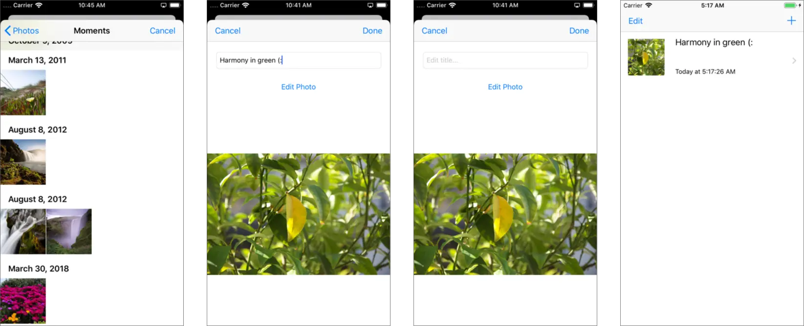 成功! 您最终可以创建正确的条目甚至编辑照片! 但是,如果您尝试更改标题或删除条目,则更改将只是暂时的,并在您退出并打开应用程序时返回。
