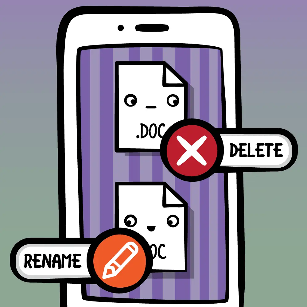 对于删除和重命名文档,您将使用FileManager,它允许您访问共享文件管理器对象,该对象允许您与文件系统的内容进行交互并对其进行更改。