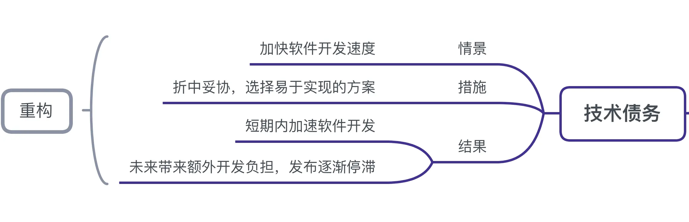 技术债务是一个比方,类比的金融领域的债务。一般指为了加快软件开发速度,折中妥协,选择易于实现的方式,结果是短期加速了软件开发,但长期来讲,开发负担累计,发布逐渐停滞。债务不都是有害的。在业务扩张,市场抢占时期,适当的债务有助于公司扩张。但是若一直不管不顾,最后只能花更大的成本去维护它,直至无法维护。