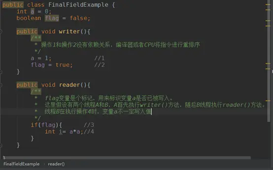 被final修饰的字段在构造器中一旦初始化完成,并且构造器没有把”this”引用传递出去(“this”引用逃逸是一件很危险的事情,其他线程有可能通过这个引用访问到”初始化了一半”的对象),那么其他线程就能看见final字段的值。