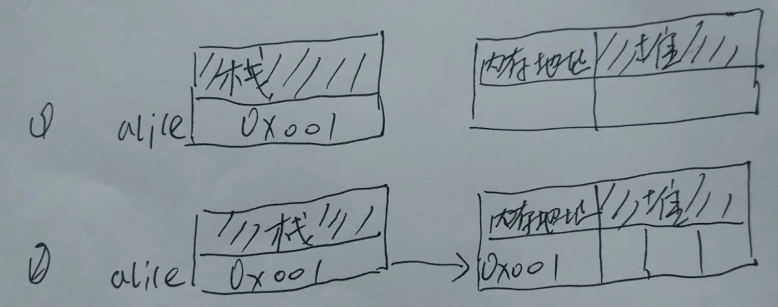 说明 :0x001 是我随便写的一个值,真实的内存地址并不是这个,这个值只是为了我画图方便!