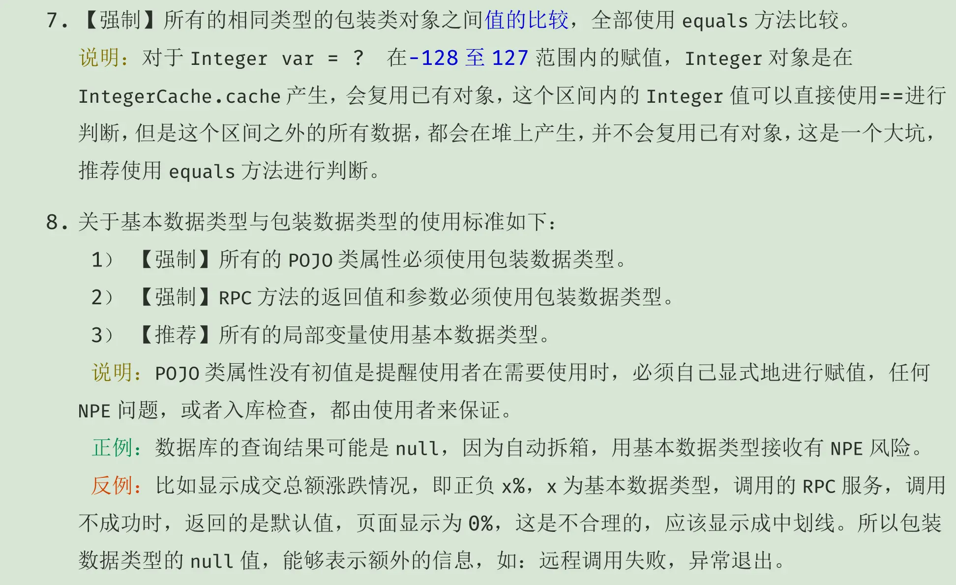 最后在贴出阿里巴巴Java手册中对包装类使用的建议: