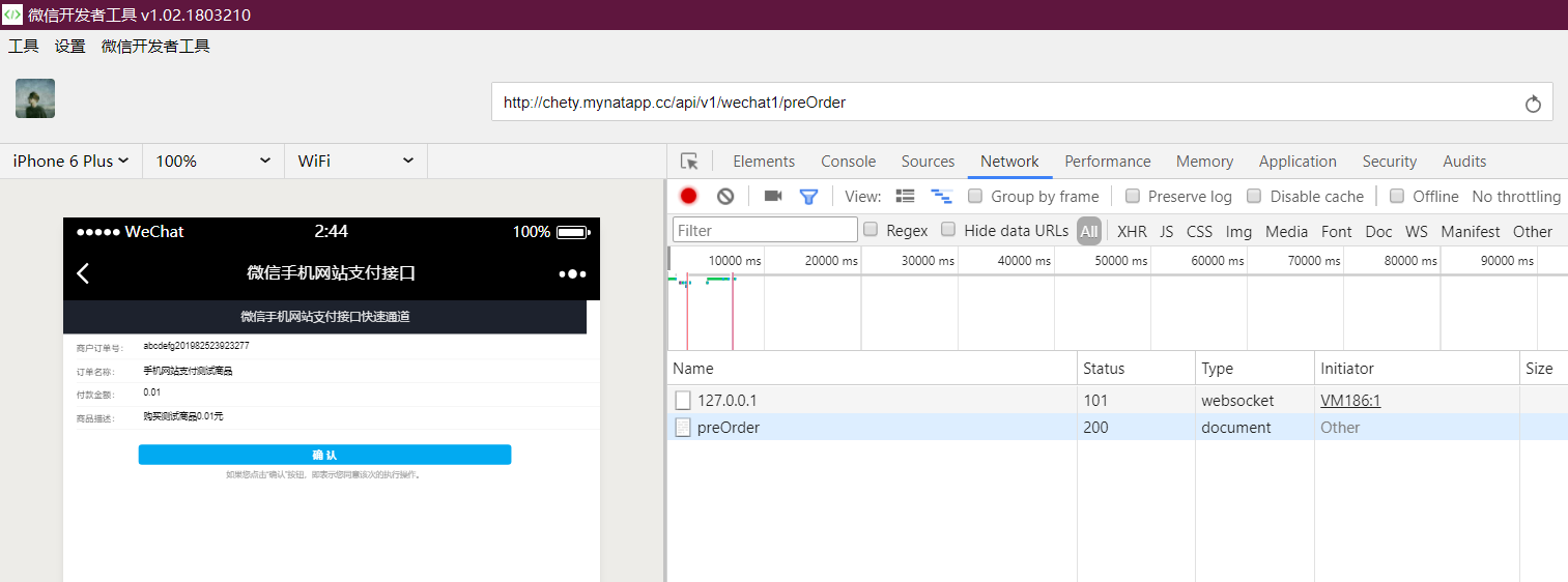 - web开发工具只能用于调试,测试支付功能时,需要用手机打开。