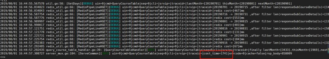 这个需求qps很小,所以网卡也不是瓶颈了,想要把需求优化到1s以内,减少I/O的次数是关键。换句话说,充分利用带宽,增大系统吞吐量。于是我把代码改了一版,原来是90次I/O,现在通过redis pipeline操作,一次请求半个月,那么3个月就是6次I/O。很开心,时间一下子少了1000ms。