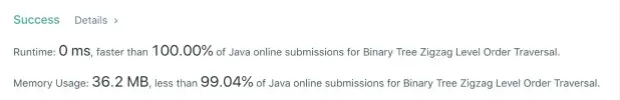 老规则,为方便验证,找一下leetcode的原题不难发现对应着leetcode上的第103题——Binary Tree Zigzag Level Order Traversal (蛇形遍历二叉树)。