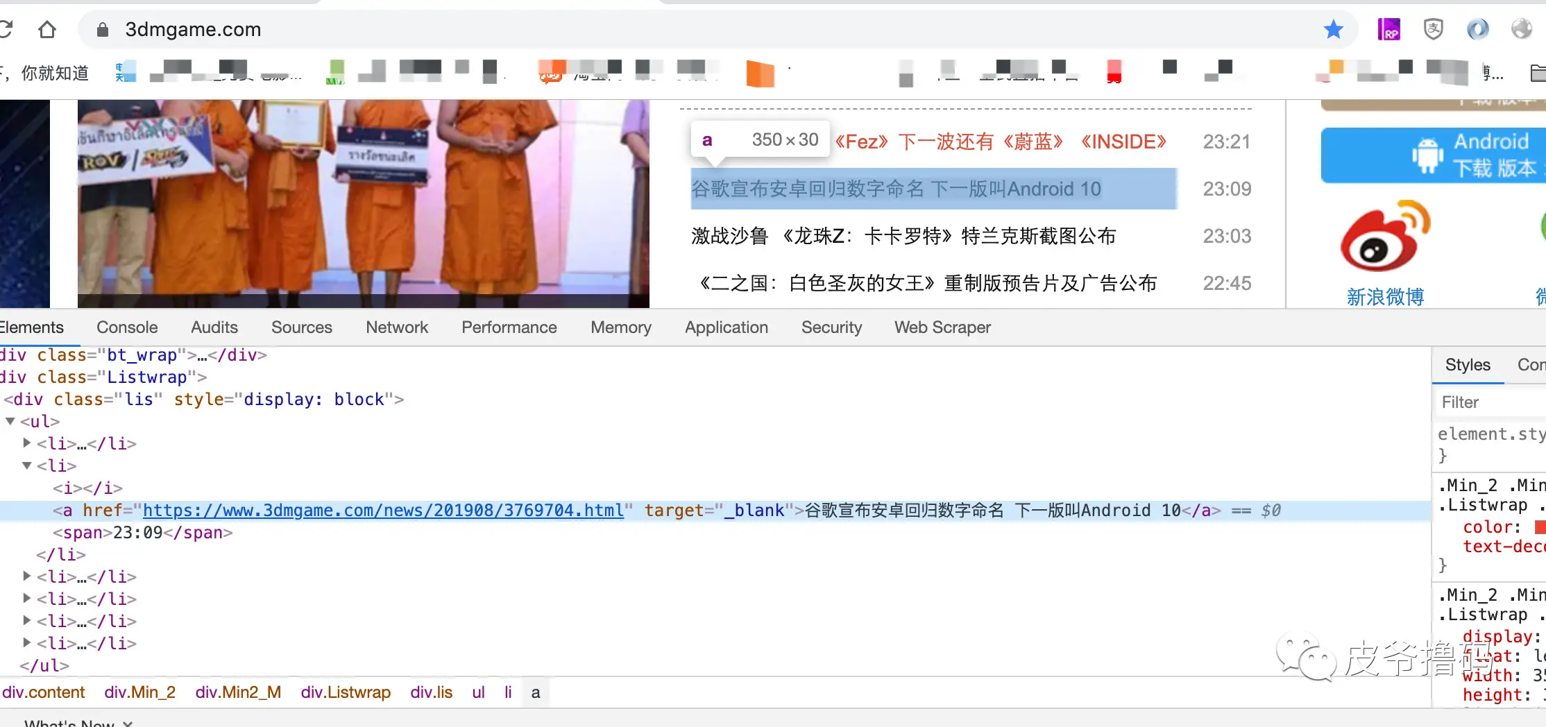 这里呢,我们就来很简单很简单的撸一个 Scrapy 爬虫代码,其实任何代码都可以, Hello World 也是可以的,只不过那样太简单了,所以我们这边稍微弄一个不简单的。爬取 https://www.3dmgame.com/ 的新闻条目信息。