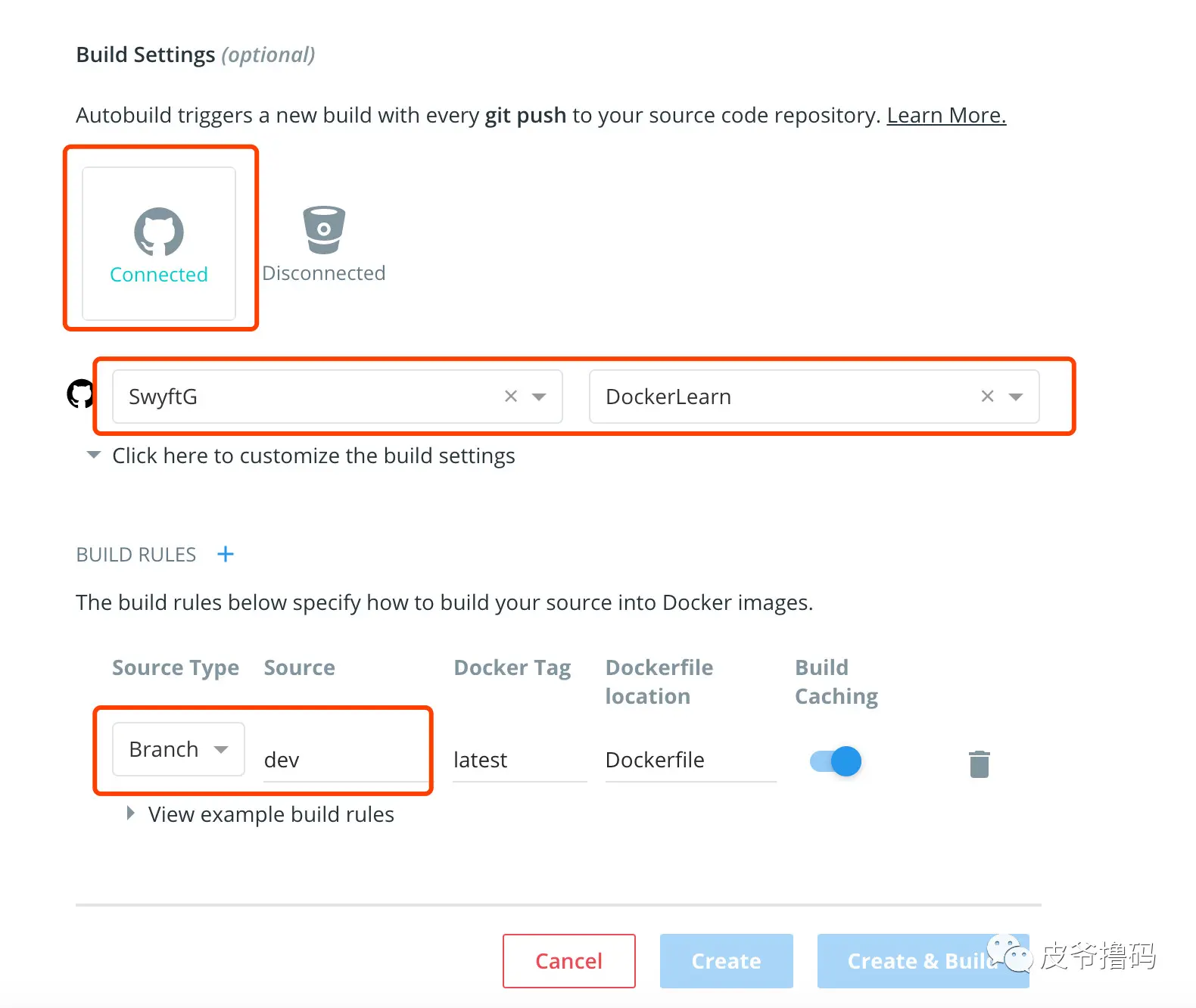 - 第三个红框,这个就是你Docker Image的代码来源。神奇不?看到 GitHub 了吗?想到我们刚才所做的了吗?