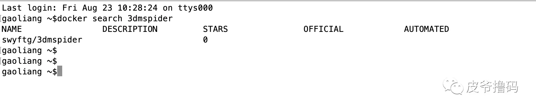 喜欢的可以关注公号『皮爷撸码』,回复『代码』,其中DC001就是 Docker 系列的代码,大家可以学习一下。你这么帅气,还不关注一下啊???
