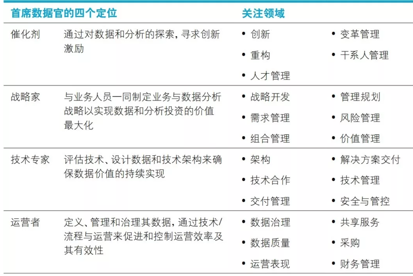 承担更多数据分析职责,除了交付和管理数据外,还通过利用数据分析来获得业务价值。此外,关注利用新兴技术解决数据及分析挑战的创新思路。