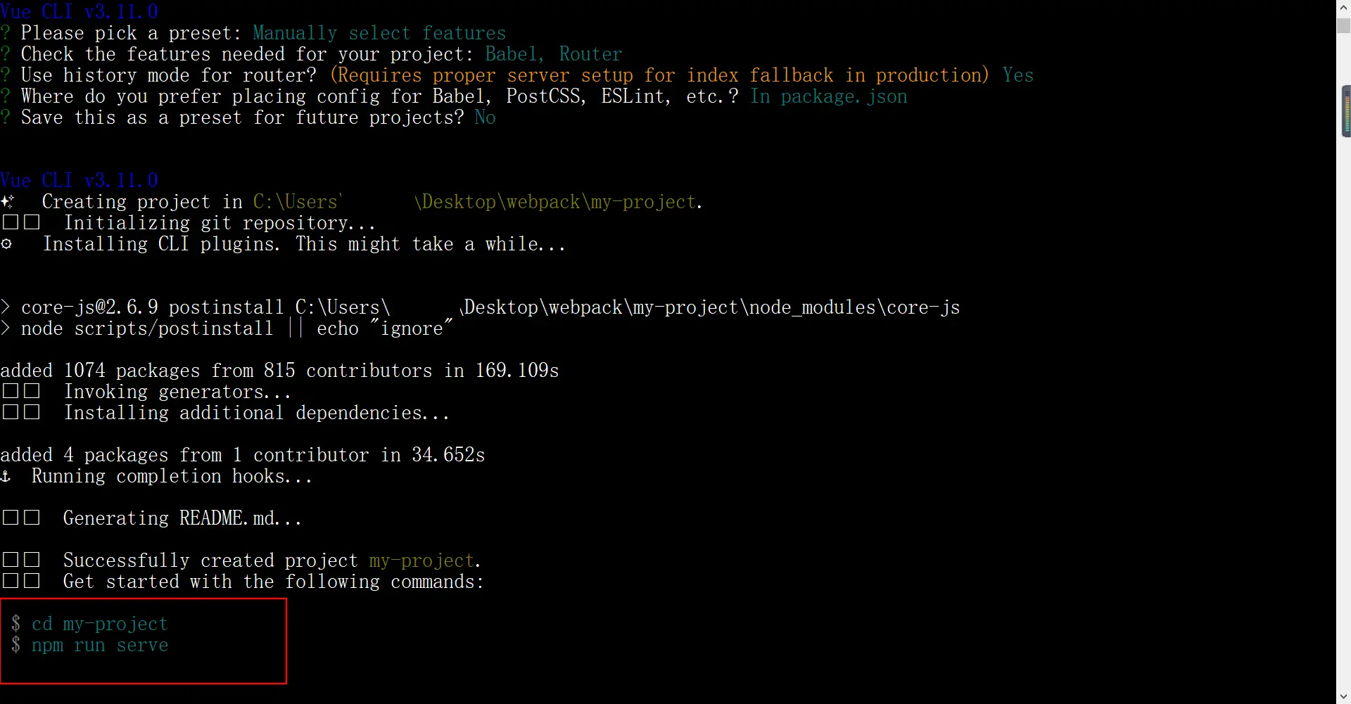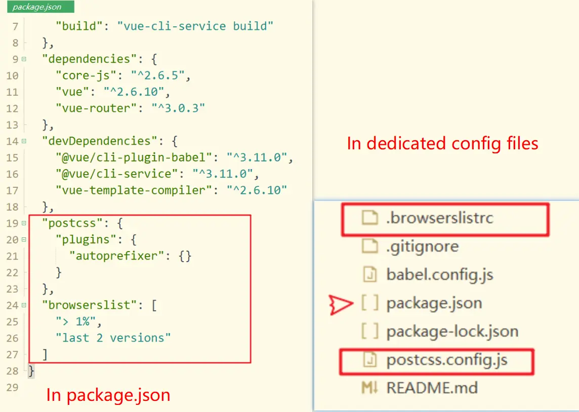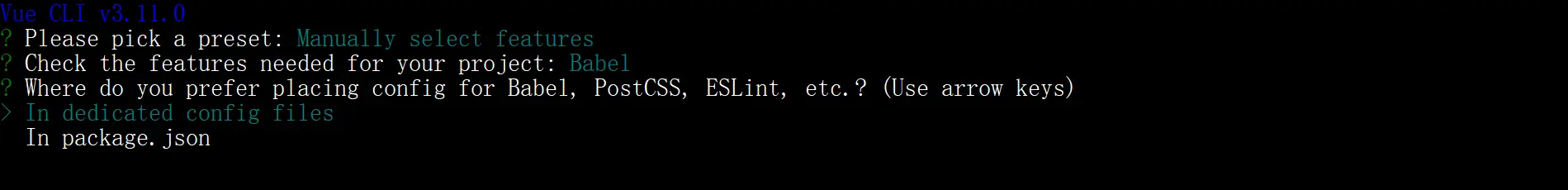 3。 问你babel等这些配置文件放哪?// in dedicated config files(在专用配置文件中) in package.json(放在package.json里)我选In package.json