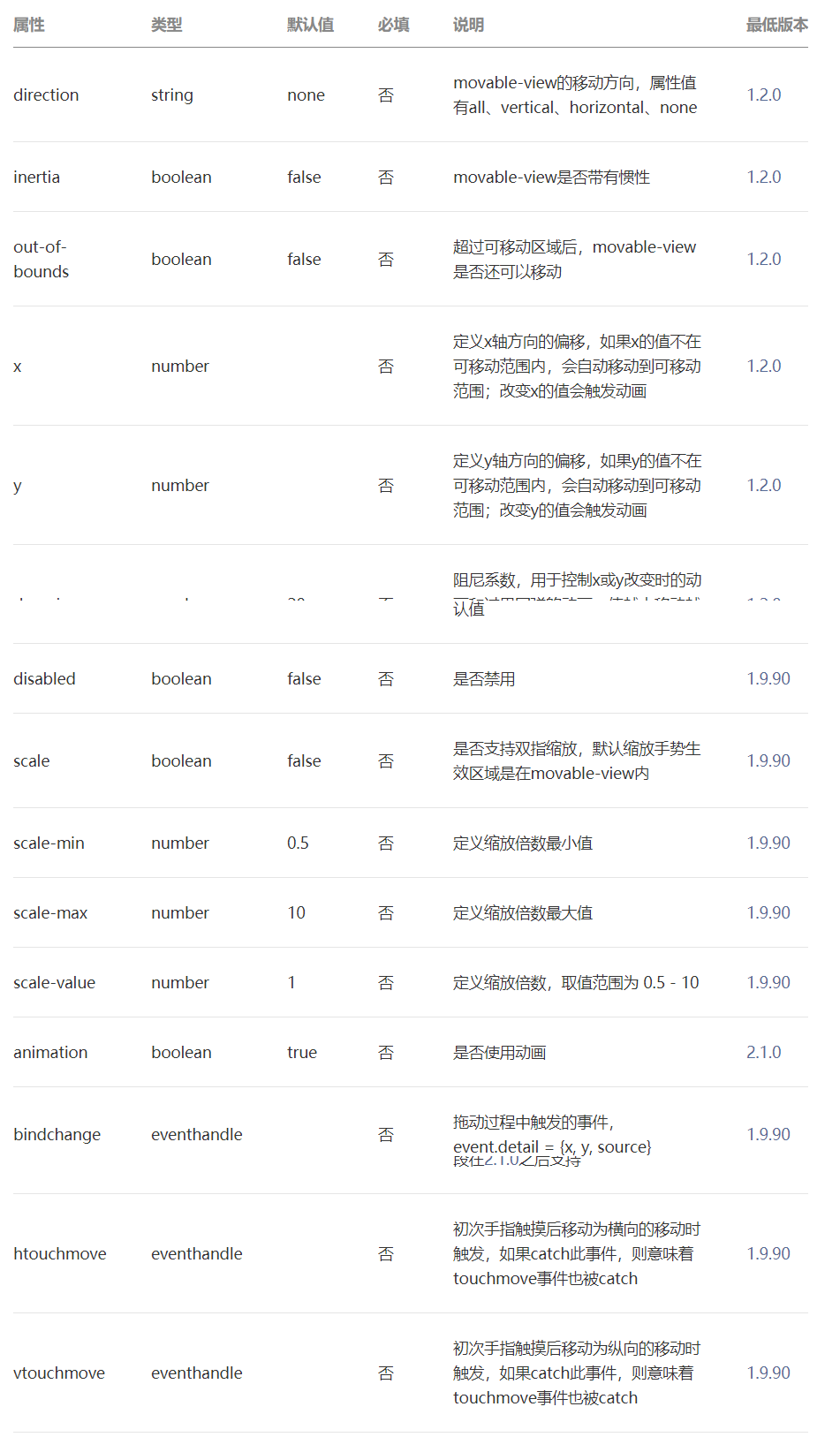 - 可移动的视图容器,在页面中可以拖拽滑动。movable-view必须在 movable-area 组件中,并且必须是直接子节点,否则不能移动。