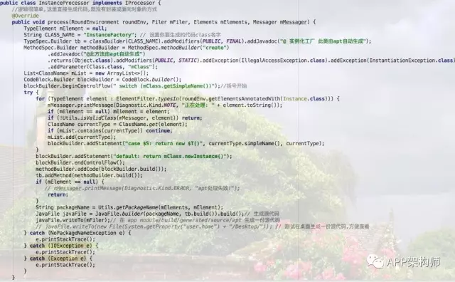 就apt本身来说没有任何难点可言,难点一在于设计模式和解耦思想的灵活应用,二在与代码生成的繁琐,你可以手动字符串拼接,当然有更高级的玩法用squareup的javapoet,用建造者的模式构建出任何你想要的源代码。