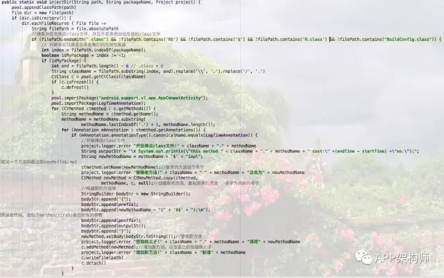 相比ASM,Javassist对java极度友好的api更容易快速上手,难点在思想的应用,小到切片逻辑的控制,如本例中的性能log打印日志,大到宏观的热修复,插件化中对preDex的操作修改,剑客精神到了这一层级,已经是上帝视角,无所不能。