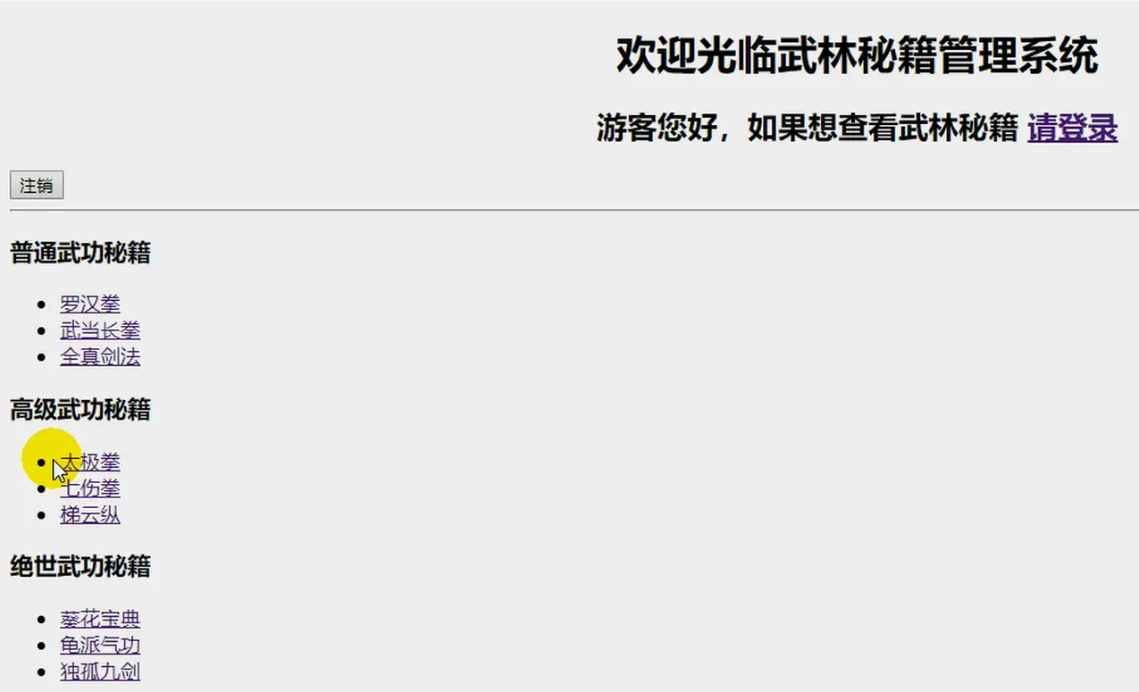 <h1 align="center">欢迎登陆武林秘籍管理系统</h1>
