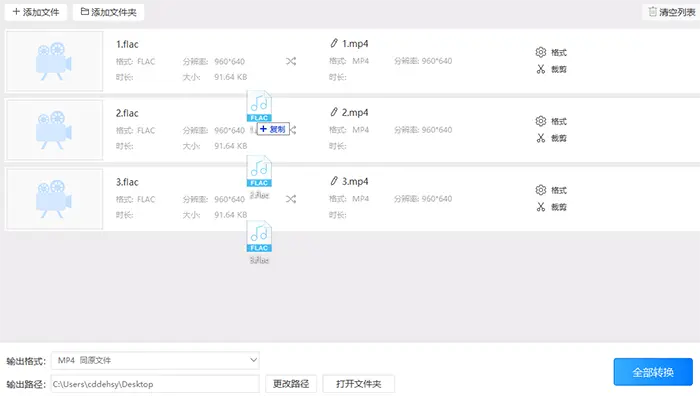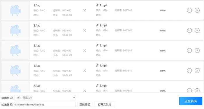 5、最好全部设置完成后就可以转换音频文件的格式了。点击全部转换,然后再等待软件将flac格式的音频转换成mp3音频格式至100%就算是转换完成了。然后点击打开按钮即可打开mp3音频文件了。